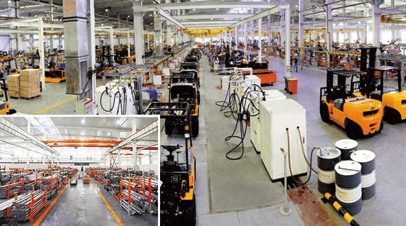 建立了國(guó)內(nèi)獨(dú)立的叉車(chē)研發(fā)及生產(chǎn)基地 擁有3條叉車(chē)總裝線、6條部套裝配線、2條油漆涂裝線和焊接機(jī)器人